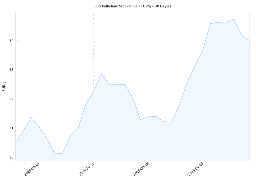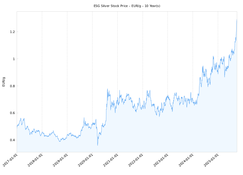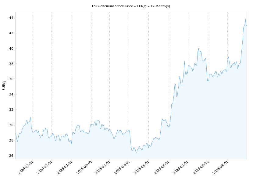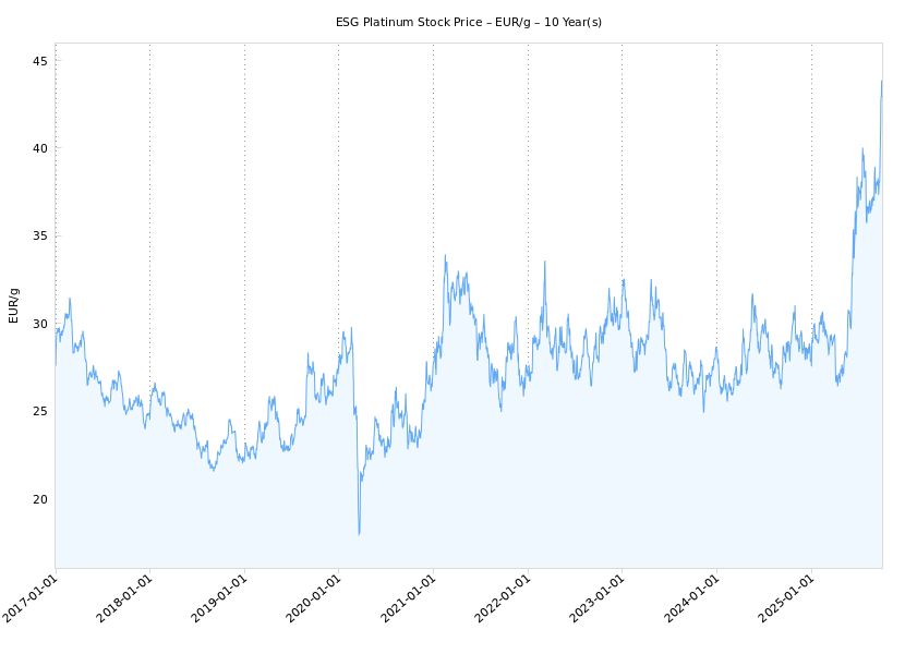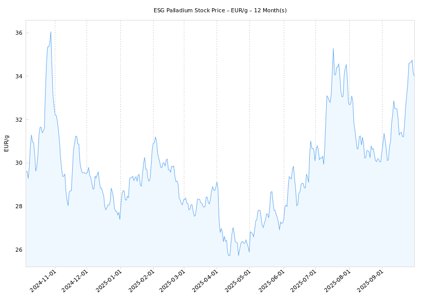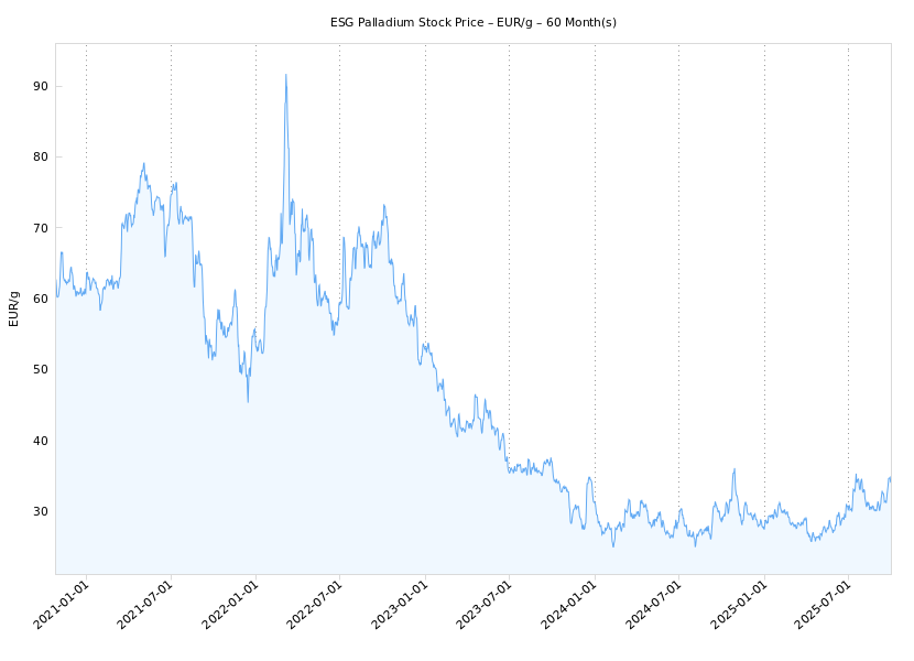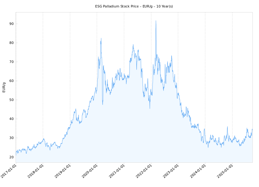 Edelmetall-Preischarts / Kursentwicklung Gold, Silber, Platin, Palladium, Rhodium