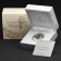 Dem feierlichen Anlass entsprechend wird die Münze in einer stilvoll gestalteten Box präsentiert. Das Etui ist in elegantem Weiß gehalten und erinnert mit seinem Klappdeckel und dem weich gepolsterten Inneren an ein traditionelles Ringkästchen. Die Oberseite der Präsentationsbox ist mit einem herzförmigen Schmuckstein verziert, der dem Geschenk eine besonders festliche Note verleiht. Die äußere Umverpackung ist in einem cremefarbenen Ton gestaltet und trägt die Aufschrift "Congratulations On Your Wedding" (deutsch: "Glückwunsch zu deiner/eurer Hochzeit"). Mit ihren beiden Farben greift die Verpackung zwei Nuancen auf, die in vielen Kulturen als traditionell für Hochzeitsfeiern gelten.